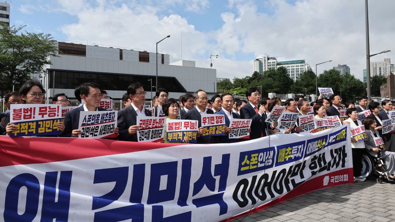 국민의힘은 오늘(1일) 용산 대통령실 앞에서 의원총회를 열어 김민석 국무총리 후보자 지명을 철회하라고 촉구했습니다.