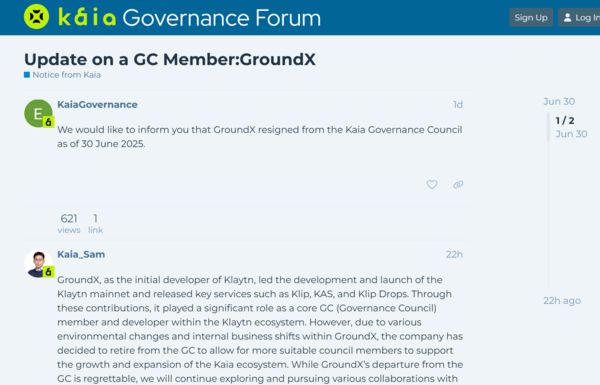 한편, 앞서 지난 4월에는 일본의 소프트뱅크도 거버넌스 카운슬에서 탈퇴한 바 있다. 현재 GC에는 카카오를 비롯해 카카오페이, 카카오엔터테인먼트가 남았으며 이외에도 라인넥스트, 라인제네시스, 바이낸스, 넷마블, 마브렉스, 네오핀, 위믹스 등이 참여하고 있다.