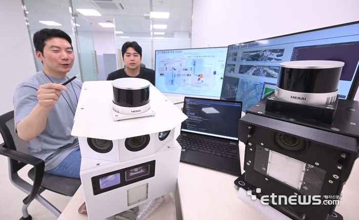 자율주행차량의 센서 인지 범위를 벗어난 음영지역을 없애기 위해 다양한 인프라 및 차량 데이터에 기반한 통합 분석 시스템 연구가 활발하다. 1일 경기도 성남시 한국전자기술연구원 정보미디어연구센터 연구원들이 카메라, 라이다, 레이더 센서 및 인프라, 자율주행차량으로부터 실시간 데이터 결합을 통해 음영지역을 줄이는 테스트를 하고 있다.