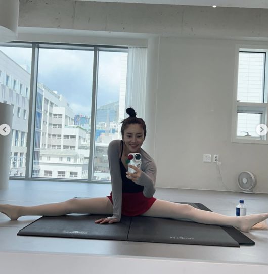 공개된 사진 속 손담비는 체조 매트 위에서 다리를 180도 찢으며 경이로운 유연성을 자랑하고 있다. 발레리나 못지않은 자세로 거울 셀카를 찍으며 환한 미소를 짓는 모습이 눈길을 끈다.