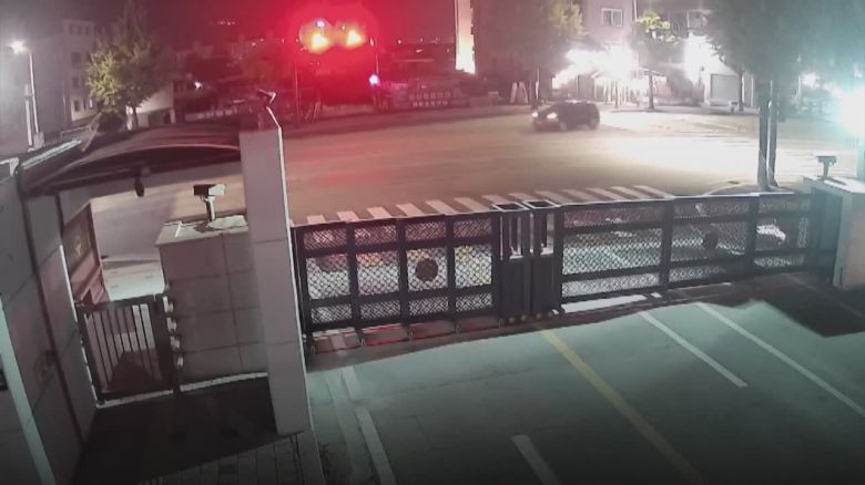 승용차는 400미터쯤 도주하다 아파트 차단기에 막힙니다.