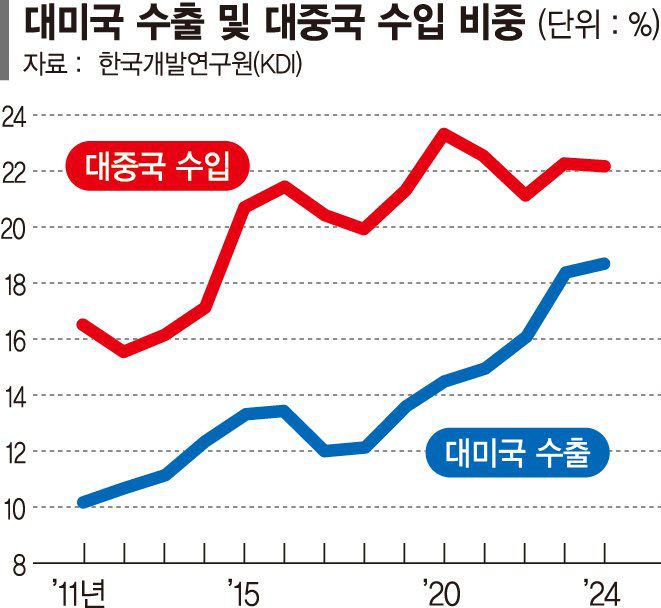 KDI 정성훈 선임연구위원은 "미국발 관세전쟁으로 촉발된 한미 통상 이슈가 마무리된다고 해도 미중 양국에 집중되면서 나타난 우리나라 무역구조의 취약성은 그대로 남아 있다"며 "무역 다변화를 위한 국가 차원의 경제외교, 통상협력과 기업 차원의 지원책이 병행돼야 한다"고 말했다.