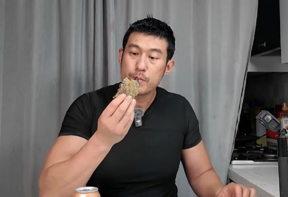 영상에서 그는 계란 2개, 전분가루, 튀김가루에 러브버그를 섞어 버거 패티를 직접 요리했다.
