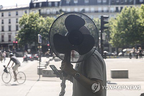선풍기를 든 채 파리 시내를 걷는 남성(파리 EPA=연합뉴스) 지난달 30일(현지시간) 한손에 선풍기를 든 남성이 프랑스 파리 시내를 걷는 모습. 2025.6.30