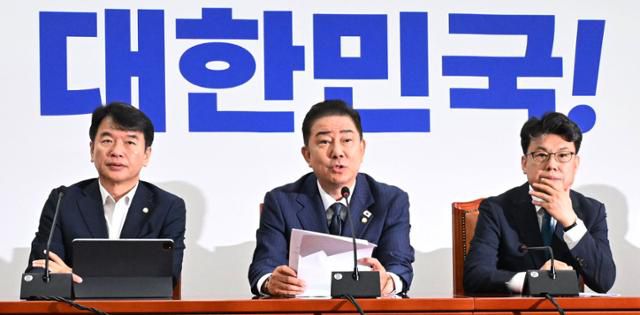 김병기 더불어민주당 당대표 직무대행 겸 원내대표가 1일 국회에서 열린 원내대책회의에서 발언하고 있다. 고영권 기자