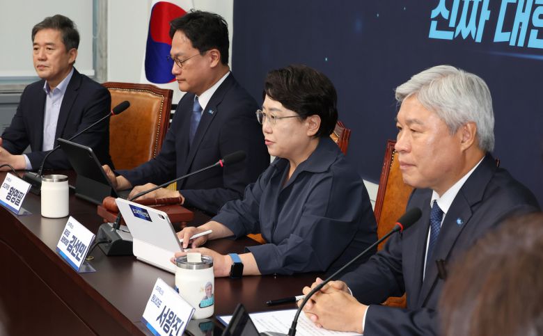 김선민 조국혁신당 당 대표 권한대행(왼쪽 세번째)이 23일 국회에서 열린 최고위원회의에서 발언하고 있다. [연합] |