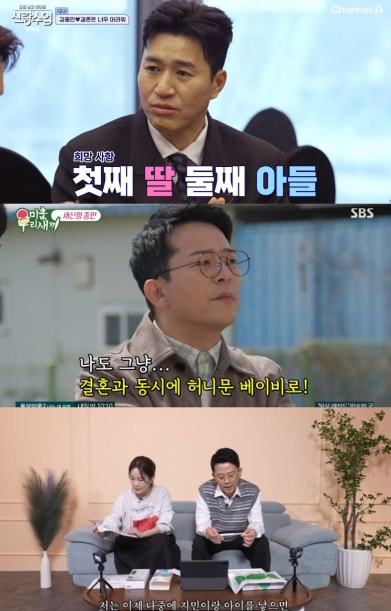 한편 또다른 '미우새' 새신랑 김종민도 2세에 대한 소망을 드러내왔다.