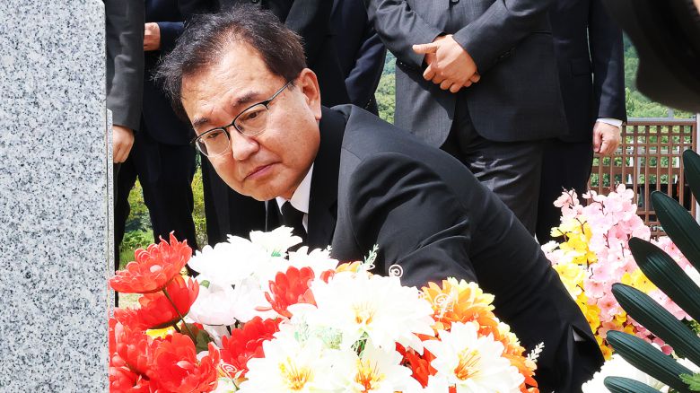 이명현 특검이 무릎을 꿇고 해병대 채 상병의 묘비를 어루만집니다.