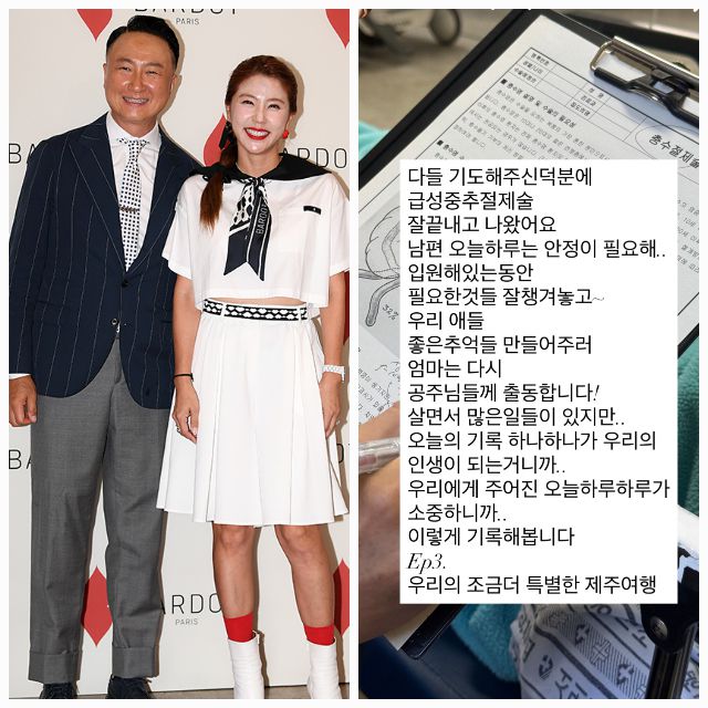 이윤미가 남편 주영훈의 급성 충수염(맹장염) 수술 소식을 전하며, 제주 여행 중 겪은 긴박한 상황을 감성적으로 풀어냈다.사진=천정환기자, 이윤미 SNS |