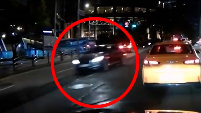 빠른 속도로 역주행하는 회색 차량이 인도 위 행인들을 그대로 덮칩니다.