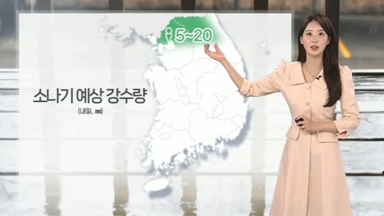 내일 오후부터 경기 북부와 강원 내륙에 최고 5~20mm 안팎의 소나기가 예상됩니다.