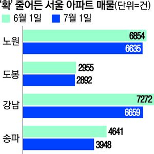 지역 별로는 노원구가 한 달 새 6854건에서 6635건으로 3.2% 매물이 줄어들었고, 이 기간 도봉구는 2955건에서 2892건으로 감소했다. 서울 자치구 중 강북구만 유일하게 1708건에서 1717건으로 소폭 증가했다.
