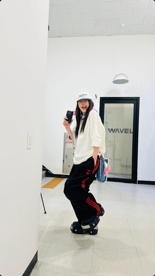 첫 컷에는 야구모자와 오버핏 셔츠, 와이드한 아디다스 트레이닝 팬츠 차림으로 벽에 기대 선 고현정의 모습이 담겼다.