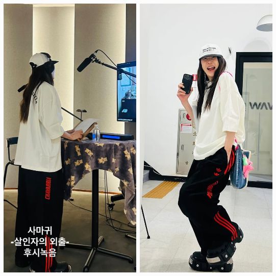 두 번째 컷에선 본격적으로 ‘댄싱 모드’. 손엔 핸드폰, 입가엔 미소를 머금은 채 다리를 구부린 포즈는 Y2K 아이콘 김완선을 떠오르게 했다. 마지막 컷에선 녹음실에서 대본을 들고 마이크 앞에 선 고현정이 포착됐다. 여전히 곧은 자세와 집중한 눈빛, 그리고 발끝에 무심히 얹은 시선까지 — 단순한 후시녹음 그 이상의 집중이 느껴졌다.