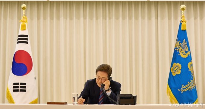 [서울=뉴시스] 이재명 대통령이 6일 서울 한남동 관저에서 도널드 트럼프 미국 대통령과 전화 통화를 하고 있다. (사진=대통령실 제공) 2025.06.06. photo@newsis.com *재판매 및 DB 금지 /사진= |
