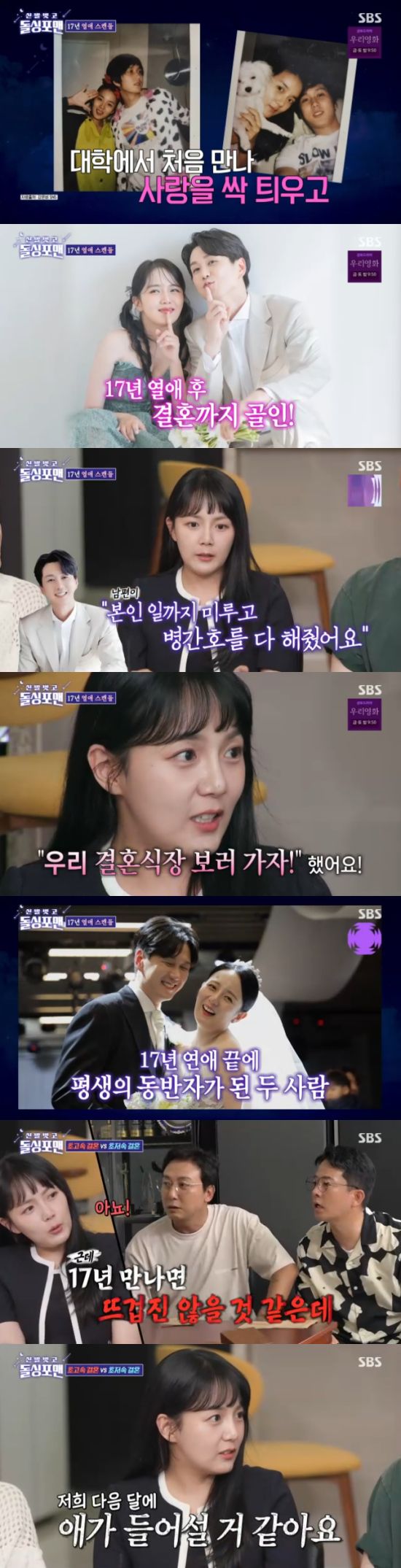 이어 "그때부터 1일인 것처럼 너무 행복했다. 이 친구를 만나 다시 태어난 느낌이다. 남편은 내게 모든 것을 맞춰준다"고 고마워했다. 하지만 MC들은 "17년을 만났으면 뜨겁지는 않을 것 같은데"라면서 질투했고, 이에 강은비는 "저희 요즘에 더 뜨거워졌다. 다음 달에 아기가 들어설 것 같다"고 깜짝 발언을 하며 모두를 놀라게 하기도 했다.
