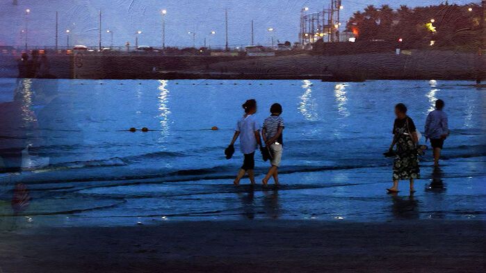 밤낮없이 더운 날씨에 시민들은 바닷물에 발을 담그고 더위를 피했습니다.