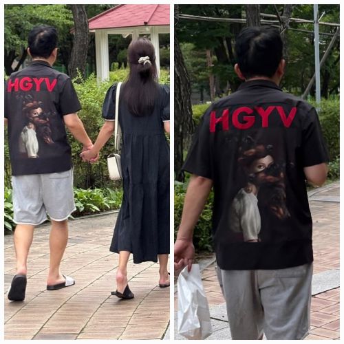 공개된 사진은 두 컷. 나란히 손을 잡고 아파트 단지 내를 걷는 장면과, 간식을 든 채 여유롭게 걸어가는 뒷모습이 이어졌다.