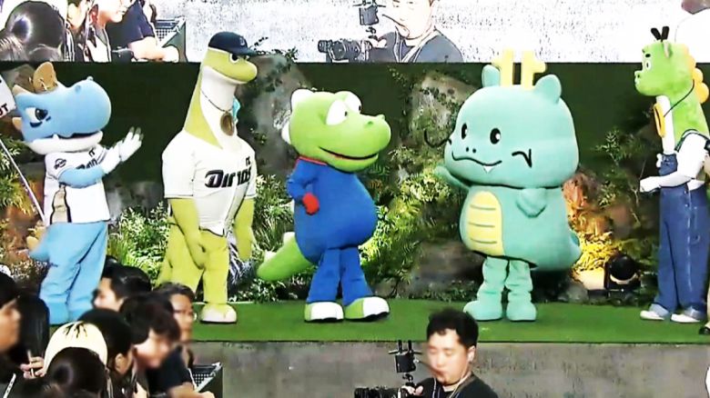 야구팀 NC다이노스의 마스코트 '단디'와 '쎄리'부터 뽀로로의 친구 '크롱', 용인시 마스코트 '조아용'에 예능 프로그램에서 활약한 '철용이'까지, 한국의 공룡 마스코트들이 잔뜩 모였습니다.