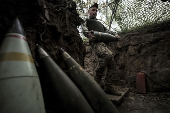 러시아 진지를 향해 포탄을 발사할 준비를 하는 우크라이나 군인의 모습. 〈사진=AP·연합뉴스〉 |