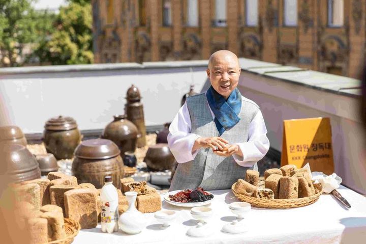 정관 스님이 '2025 코리아온 한국문화페스티벌' 사전 행사로 열린 장 담그기에 참여한 모습. (사진=주헝가리 한국문화원 제공) *재판매 및 DB 금지 |