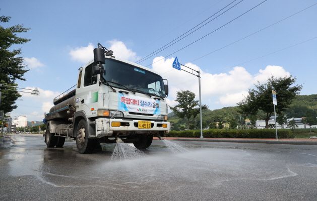 특히, 살수차 5대를 임차해 읍·면 주요 도로 22km 구간에 폭염특보 발효 시 집중 살수를 실시, 열섬현상과 미세먼지 확산을 저감하고 있다.