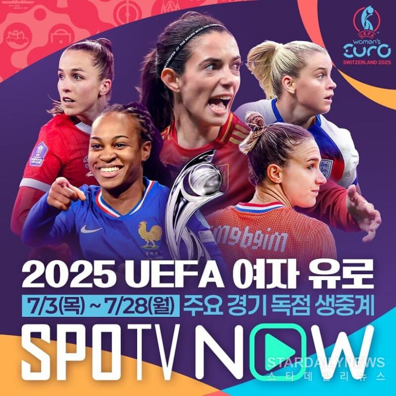 [스타데일리뉴스=김나나기자] 유럽 여자 축구 강호들이 정상을 두고 격돌하는 2025 UEFA 여자 유로가 3일(목) 개막한다. 스위스에서 진행되는 이번 대회는 개최국 스위스는 물론 FIFA 랭킹 2위 스페인과 3위 독일, 5위 잉글랜드를 포함해 16개 국가가 경쟁하게 된다. 2025 UEFA 여자 유로 중계를 위해 전가을 해설위원이 스포티비(SPOTV)와 함께한다. A매치 101경기에 나서 38골을 기록한 전가을 위원은 대한민국 여자축구 다섯 번째로 센추리 클럽(100경기)에 가입한 바 있다. 최근 은퇴 이후 해설위원은 물론 축구 예능에서도 맹활약하며 축구 엔터테이너로서 입지를 다지고 있다.