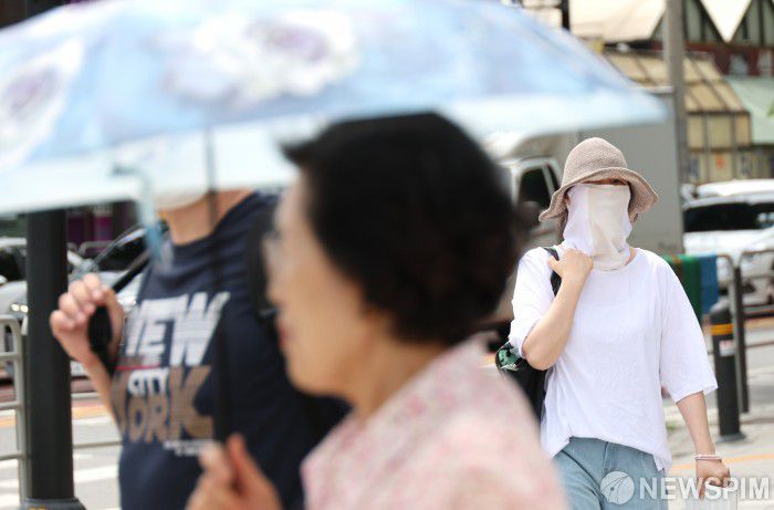 [서울=뉴스핌] 김학선 기자 = 서울 전역에 올해 첫 폭염주의보가 발효된 30일 오후 서울 성동구 마장역 인근에서 시민들이 모자와 양산 등을 쓰고 뜨거운 햇볕을 피해 걷고 있다. 2025.06.30 yooksa@newspim.com |