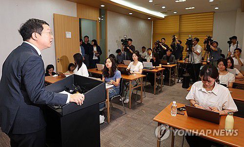 (서울=연합뉴스) 김도훈 기자 = 순직 해병 특별검사팀의 정민영 특검보가 2일 서울 서초구 특검 기자실에서 언론 브리핑을 하고 있다. 2025.7.2 superdoo82@yna.co.kr