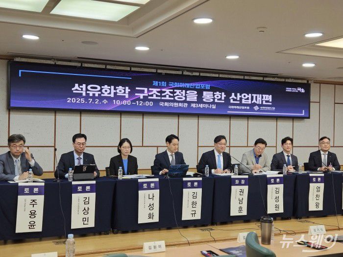 국회미래산업포럼은 2일 오전 국회의원회관 제3세미나실에서 '제1회 국회미래산업포럼 - 석유화학 구조조정을 통한 산업재편' 세미나를 개최하고 국내 석유화학 구조조정 현황과 전망을 살폈다. 이 자리에는 권남훈 산업연구원장을 비롯해 김한규 더불어민주당 국회의원, 김성원 국민의힘 국회의원, 나성화 산업통상자원부 국장 등 주요 관계자들이 참석했다.