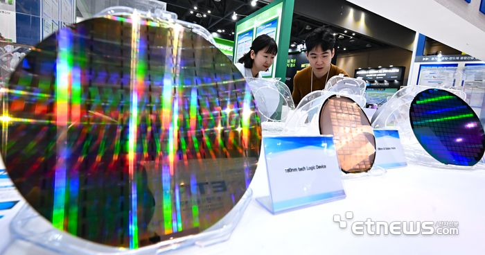 나노코리아2025가 '더 나은 미래를 만드는 나노기술'을 주제로 2일 경기 고양시 킨텍스에서 열렸다. 참관객이 한국나노기술원의 시스템반도체 웨이퍼를 살펴보고 있다. 이동근기자 foto@etnews.com [Copyright © 전자신문. 무단전재-재배포금지] 이 기사의 카테고리는 언론사의 분류를 따릅니다.0공유하기