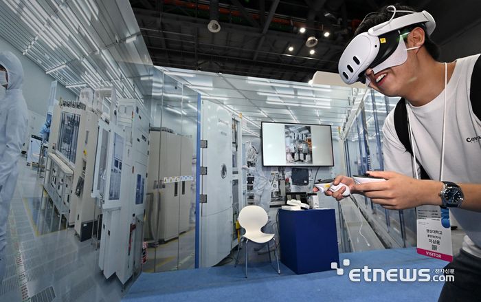 나노코리아2025가 '더 나은 미래를 만드는 나노기술'을 주제로 2일 경기 고양시 킨텍스에서 열렸다. 참관객이 나노종합기술원 부스에서 반도체 에칭 장비 안의 제작 공정을 볼 수 있는 확장현실(XR) 체험을 하고 있다. 이동근기자 foto@etnews.com [Copyright © 전자신문. 무단전재-재배포금지] 이 기사의 카테고리는 언론사의 분류를 따릅니다.0공유하기