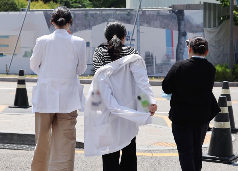 의대 증원을 놓고 정부와 의료계 간의 갈등이 계속되는 가운데 21일 서울의 한 대학병원에서 의료진이 이동하고 있다. 뉴시스 |
