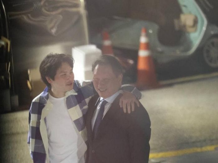 최태원 SK그룹 회장과 장남 최인근 군이 담긴 사진이 공개되면서 화제를 불러일으키고 있다. 사진=온라인 커뮤니티 캡처