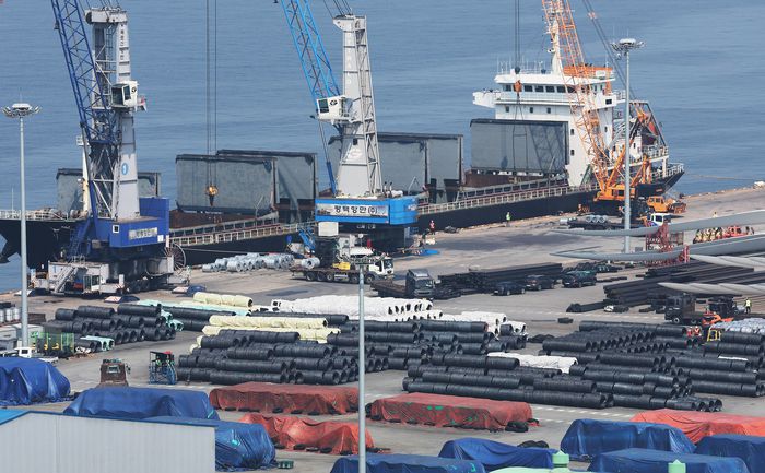 경기도 평택항에 쌓여 있는 철강 제품 (사진=연합뉴스)