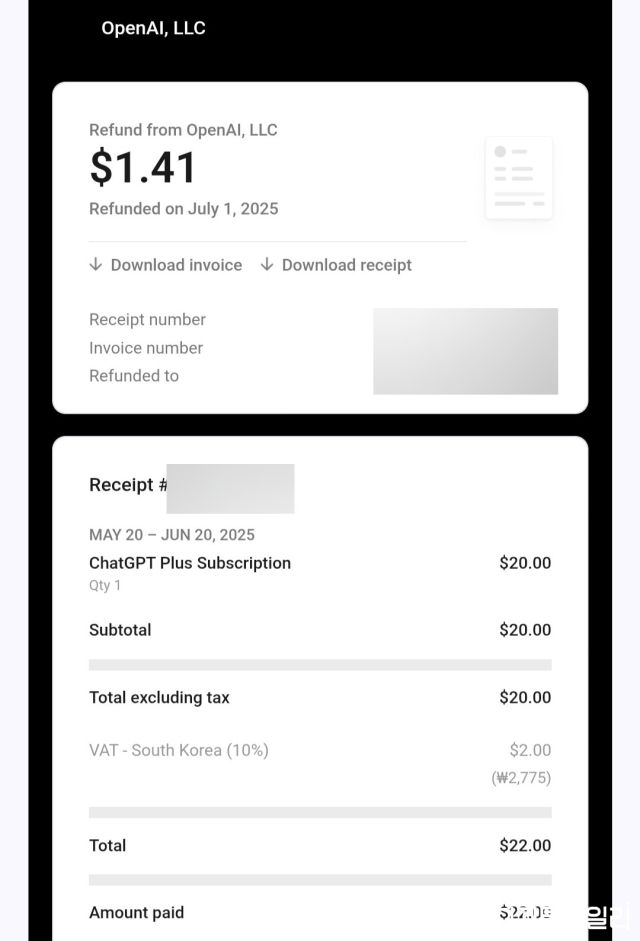 2일 정보기술(IT) 업계에 따르면 오픈AI는 전날부터 국내 챗GPT 유료 이용자에게 개별 보상안을 안내하고 있다.