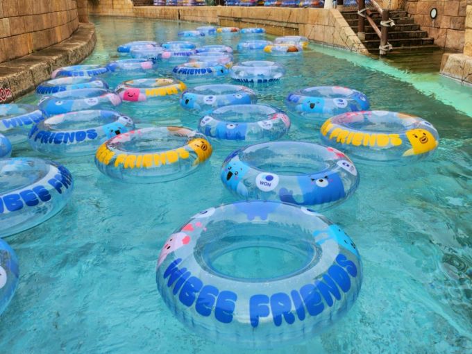 우리은행이 위비프렌즈 캐릭터 디자인으로 제작된 '위비프렌즈 튜브'를 캐리비안 베이 유수풀에 비치한다. /사진제공=우리은행 |