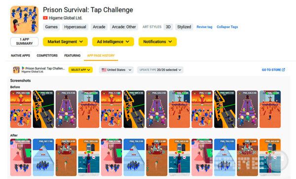 가장 간단한 방법 중 하나는 영리한 ASO다. 쇼의 미학을 참조하는 적절한 타이틀, 아이콘, 스크린샷은 앱스토어에서 게임을 돋보이게 한다. 예를 들어, Prison Survival: Tap Challenge는 이를 완벽히 실행해 2024년 11월 가장 많이 다운로드된 하이퍼캐주얼 게임이 되었다. 게임의 앱 페이지 히스토리에서 오징어 게임 참조가 설치 급등을 이끌었을 가능성이 높다.