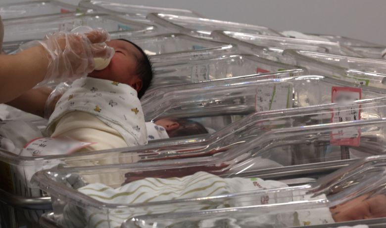 신생아실에서 분유를 먹고 있는 아기들. 대한민국 인구 감소가 가속화되는 가운데, 다음 세대를 이끌어갈 아이들의 울음소리가 점점 줄고 있다. 연구에 따르면 현재 5000만 명이 넘는 우리나라 인구는 100년 뒤 750만 명 수준까지 감소할 수 있다는 전망도 나왔다. 뉴시스