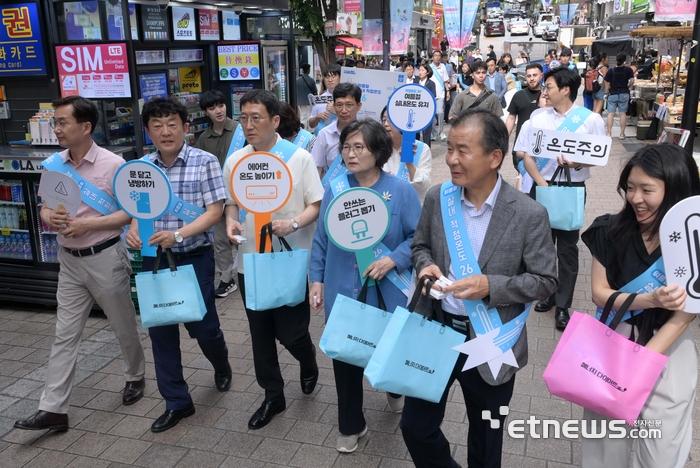 산업통상자원부와 한국에너지공단이 주최한 2025년도 여름철 에너지절약 캠페인 출범식'이 2일 서울 중구 온드림소사이어티에서 열렸다. 환경단체 관계자들이 에너지절약 캠페인 홍보 활동을 하고 있다. 김민수기자 mskim@etnews.com [Copyright © 전자신문. 무단전재-재배포금지] 이 기사의 카테고리는 언론사의 분류를 따릅니다.0공유하기