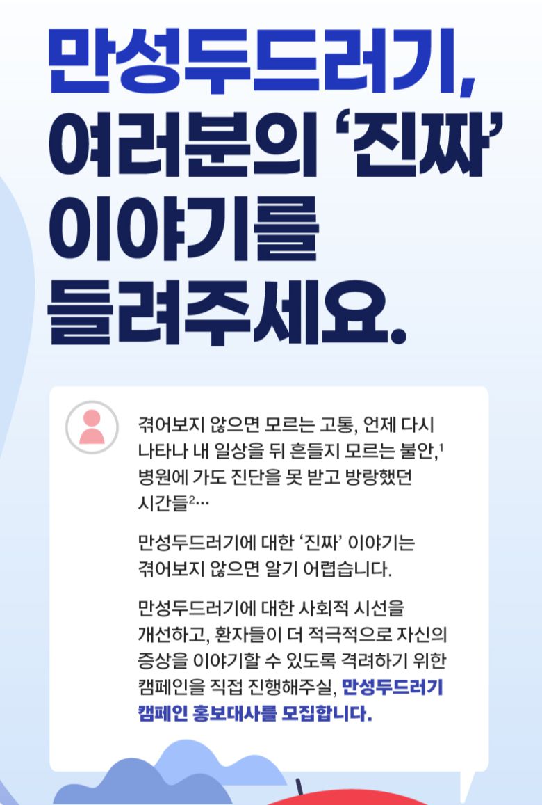 이번 캠페인은 단순한 질환 인식 개선을 넘어, 만성두드러기 환자들이 자신의 증상을 더 깊이 이해하고, 주체적으로 자신의 이야기를 세상에 전할 수 있도록 돕는 환자 중심의 활동으로 기획됐다.
