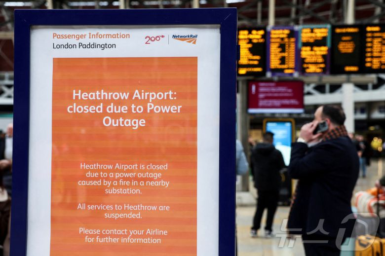 영국 런던 패딩턴역에 설치된 히스로공항 정전 폐쇄 공지문 2025.03.21 ⓒ 로이터=뉴스1 ⓒ News1 이지예 객원기자 |