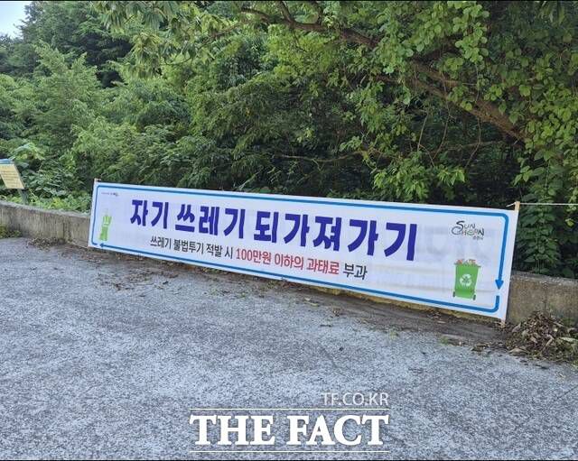 순천시가 '여름철 피서지 쓰레기 관리대책' 일환으로 쓰레기 되가져가기 홍보 현수막을 설치하고 있다./순천시 |