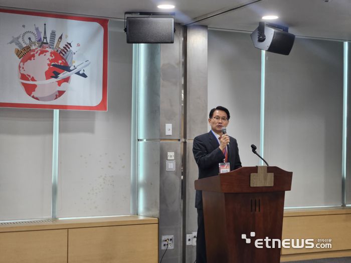 장수청 야놀자리서치 원장이 2일 양재 AT센터에서 열린 '2025 글로벌 관광도시 매력도 평가' 세미나에서 인사말을 하고 있다.