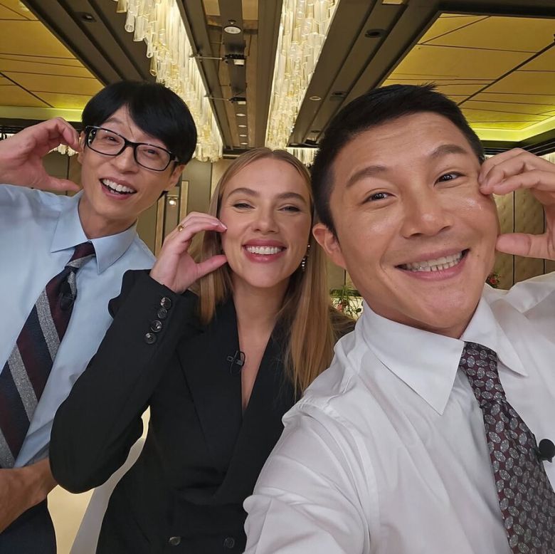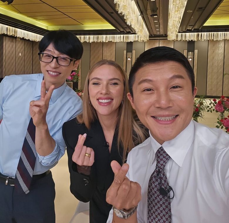 공개된 사진에서 스칼렛 요한슨은 유재석, 조세호와 함께 볼하트, 손하트, 브이 포즈를 취하며 밝은 미소를 짓고 있어 본방송에 대한 기대를 높였다.