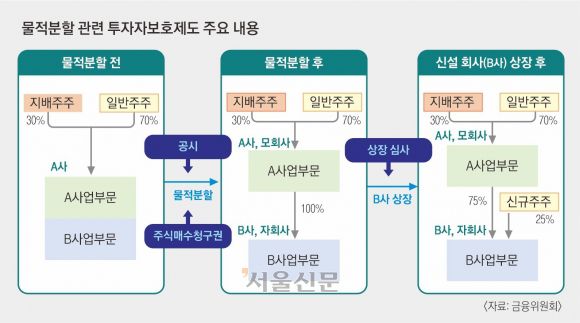 이창민 한양대 경영학과 교수는 “물적분할은 본래 구조조정 수단이지만, 한국에선 지배주주가 지분율 희석 없이 알짜 자회사를 상장해 자금을 조달하는 수단으로 변질됐다”며 “주주 권익을 보호할 제도적 장치가 미흡하기 때문”이라고 지적했다. 이 교수는 “기업 분할 의사결정 시 지배주주의 의결권 행사를 3%로 제한하는 ‘3%룰’, (지배주주와의 이해 충돌 소지가 있는 안건에서 일반 주주 과반수의 승인을 받도록 한) ‘소수주주 과반 결의제’(MOM) 등 일반 주주 중심의 의결 방식 도입이 필요하다”고 강조했다.