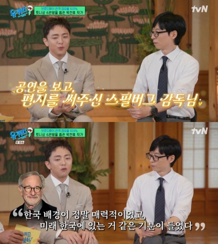 2일 방송된 tvN ‘유 퀴즈 온 더 블럭’에는 한국인 최초로 토니상을 수상한 뮤지컬 ‘어쩌면 해피엔딩’의 박천휴 작가가 게스트로 출연했다.