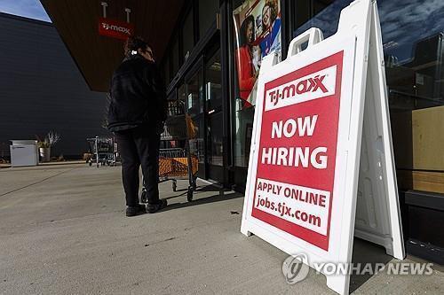 미 매사추세츠주 소매 체인의 구인 간판[EPA 연합뉴스 자료사진. 재판매 및 DB 금지]