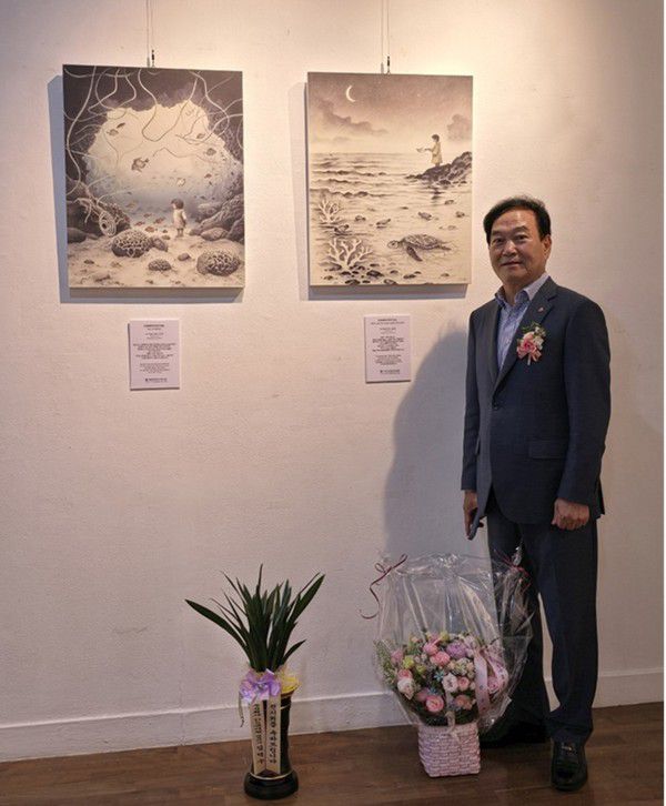 AI Art전시회에 김진우 불교 리더스포럼 환경분과위원(세종로 국정포럼 친환경소재 위원장)이 "침묵의 바다(Sea of Silence)", "엄마, 바다는 원래 이렇게 슬픈 곳이었나요?"란 제목의 작품을 전시했다.