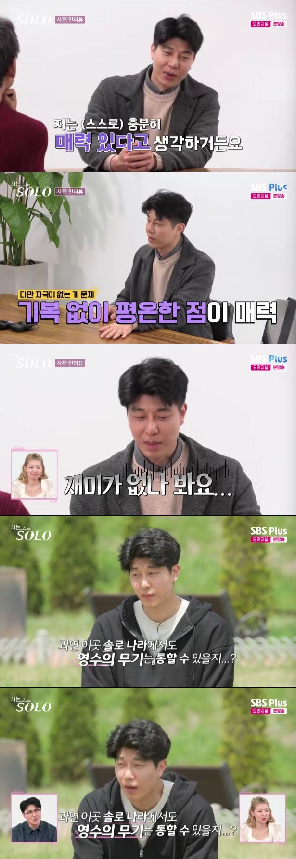 본인의 매력에 대해서는 "나는 충분히 매력있다고 생각한다. 평온한 스타일이다. 데이트할 때도 자극이 없나 보다. 재미가 없나 보다. 말장난을 하는 걸 좋아하는데 잘 안 받아주더라"고 이야기했다.